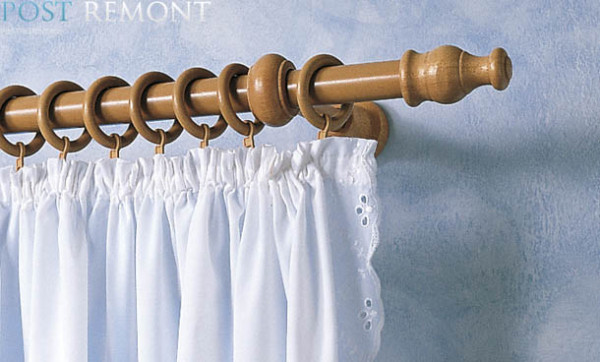 Монтаж профильного карниза производиться по тому же алгоритму, что и рельсовый — на дюбель-гвозди. Шторы закрепляют к основанию на колечки или липучки.