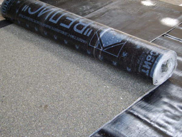 - Модифицированный тугоплавкий битум. Чтобы улучшить технические характеристики кровельного матерела, на поверхность наносится смесь битума с синтетическими каучуками, повышающими гидроизоляционные качества покрытия.