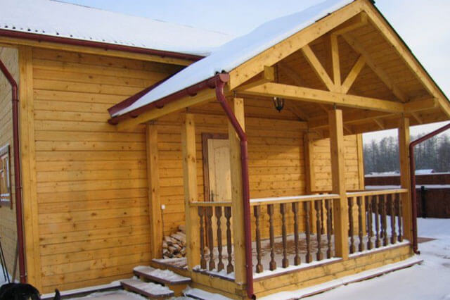 Сама по себе древесина характеризуется незначительным весом, что дает большое преимущество перед другими материалами. Регулярная обработка антисептическими составами и защитным лаком или краской продлевает срок службы деревянных конструкций. Цена древесины вполне доступна для большинства потребителей. К тому же древесина легко поддается обработке, что позволяет самостоятельно сделать навес над крыльцом деревянного дома.